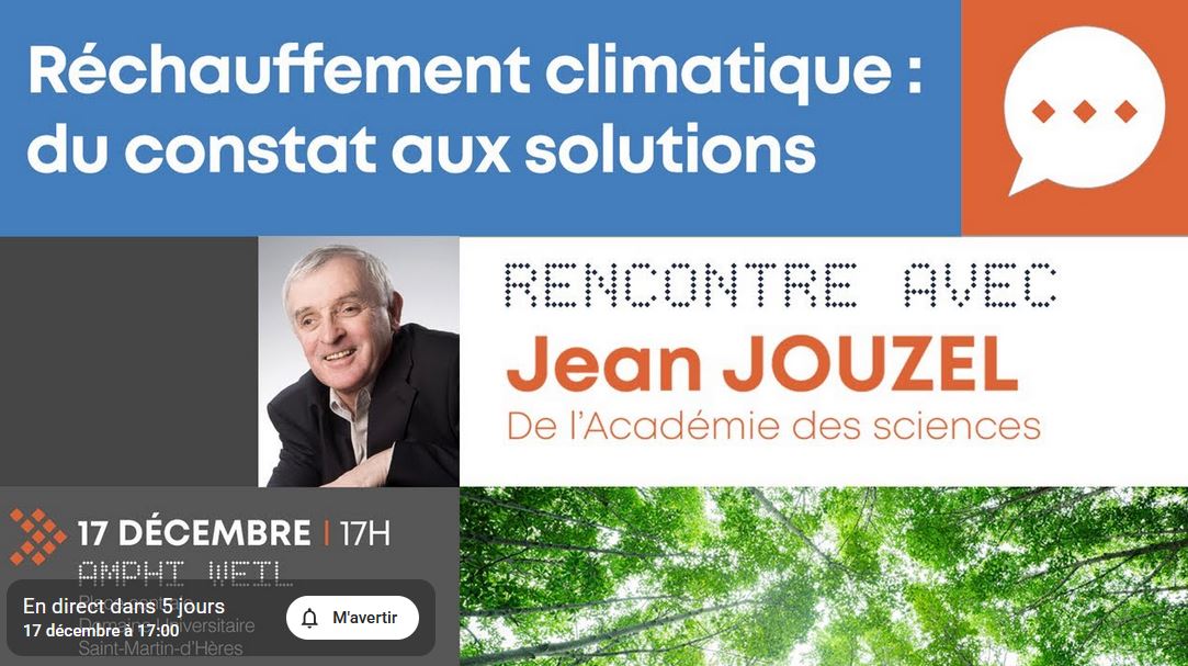 S’appuyant sur les dernières conclusions du GIEC (Groupe d’experts Intergouvernemental sur l’Évolution du Climat), Jean Jouzel présentera l’état actuel des connaissances sur le changement climatique : sa réalité scientifique, ses origines et ses impacts majeurs. Quelles répercussions pour le territoire national ? Quelles stratégies d’adaptation à mettre en œuvre ? Quelles pistes pour atteindre la neutralité carbone ?