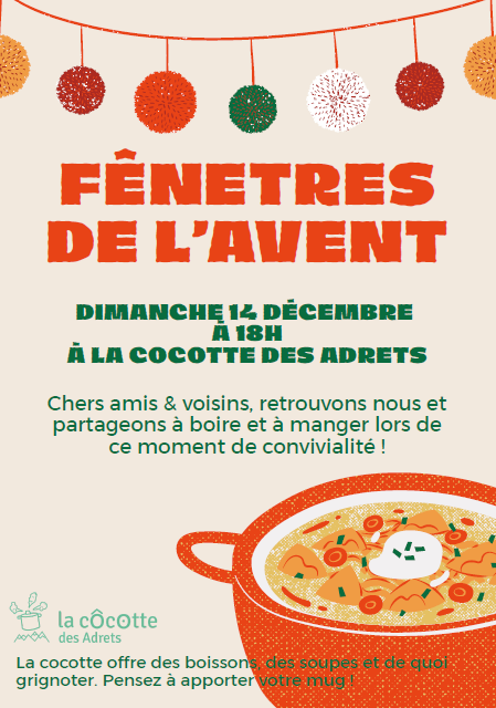 La Cocotte organise sa fenêtre de l'avent le dimanche 14 décembre prochain à partir de 18h à la Cocotte !